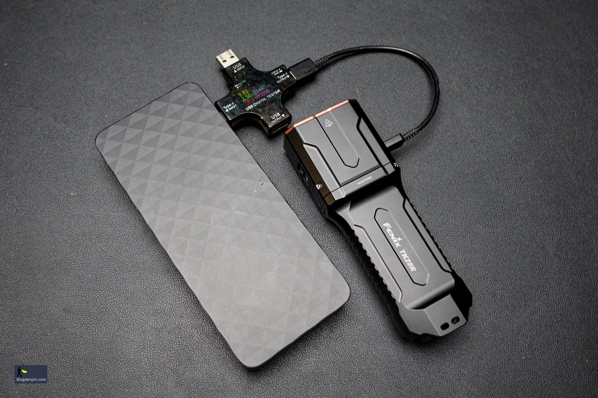 Cổng Type-C của Fenix TK28R hỗ trợ sạc nhanh tới 27W. Thực tế mình đo được thì công suất ổn định ở ~ 25W là quá ok rồi, cho phép đầy pin chỉ trong khoảng ~ 1.5 tiếng từ lúc cạn. Khi vội mà không có pin thay thì chỉ cần sạc ~ 30 phút cũng đủ dùng cơ bản.