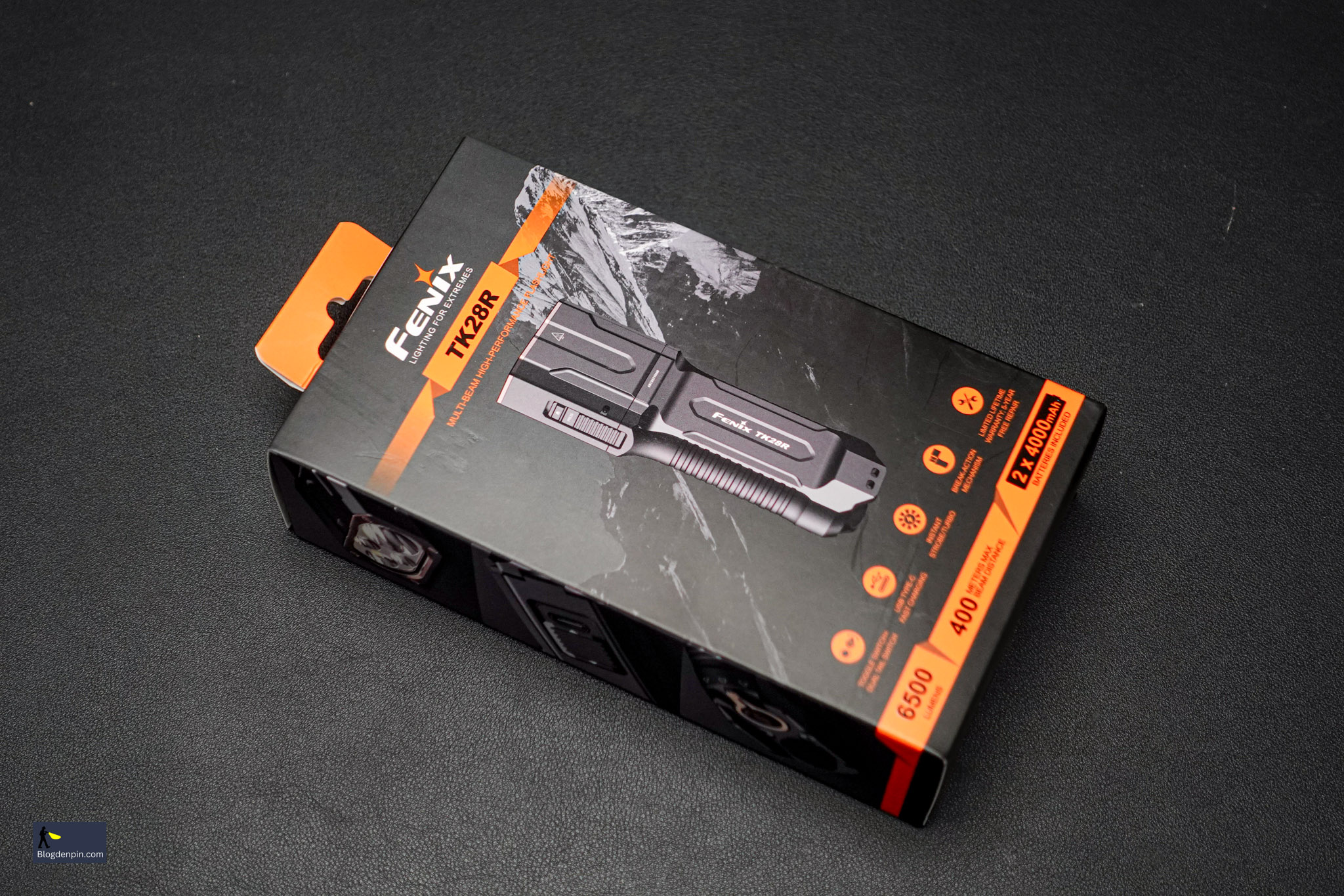 Cấu hình của Fenix TK28R cũng thuộc hàng khủng với 6500 Lumens, chiếu xa 400 mét, ánh sáng đỏ 260 Lumens và sử dụng 2 pin sạc 18650 có tổng dung lượng 8000mAh.