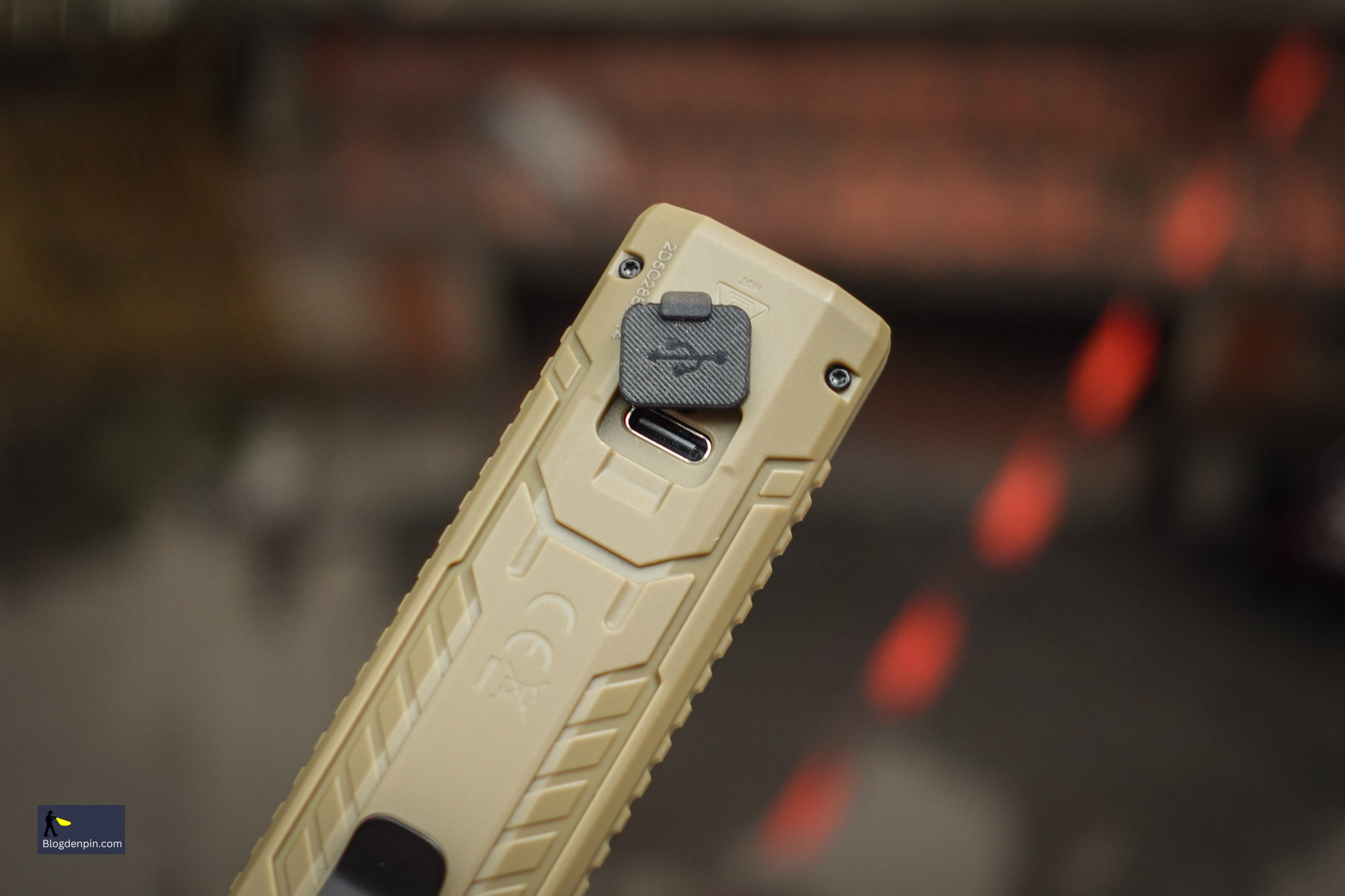 Pin được sạc trực tiếp qua cổng Type-C được đặt gọn gàng ở gần đầu đèn với nắp đậy cao su chống nước.