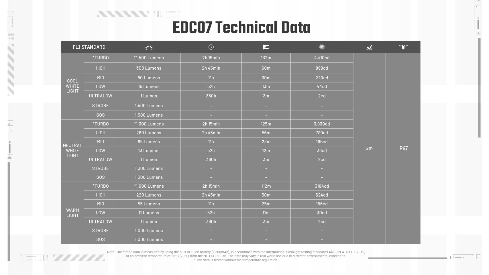 => Kết quả này không có gì ngạc nhiên bởi 1500 Lumens là một độ sáng mà ngay cả đèn chạy pin 18650, vỏ nhôm cũng không duy trì nổi quá 1 phút chứ đừng nói tới EDC07.