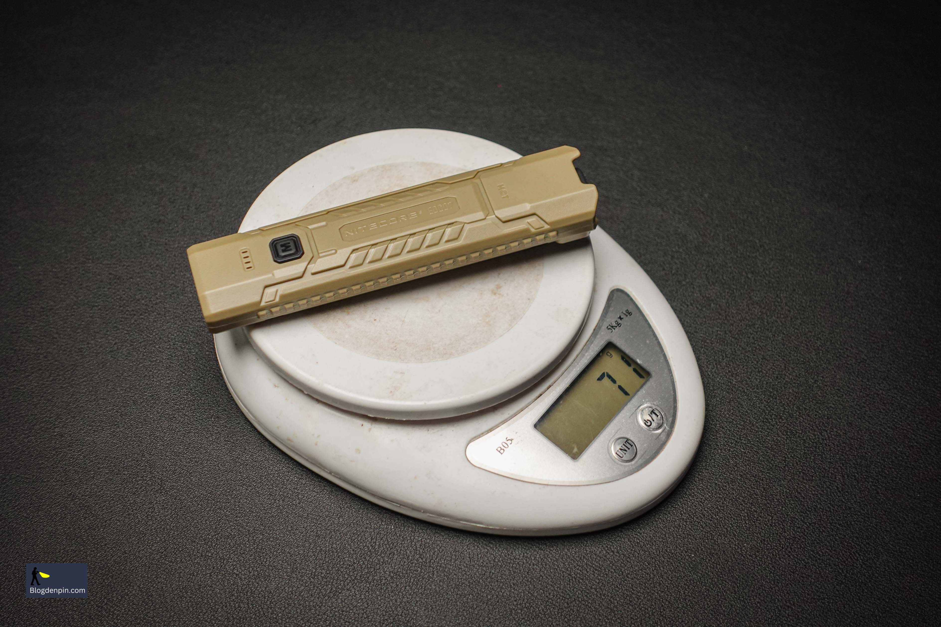 Đầu tiên là trọng lượng. Toàn bộ cây đèn, tính cả pin, chỉ khoảng 70g – ngang ngửa 3 viên AA. Bỏ túi gần như không cảm nhận được sự tồn tại của nó.