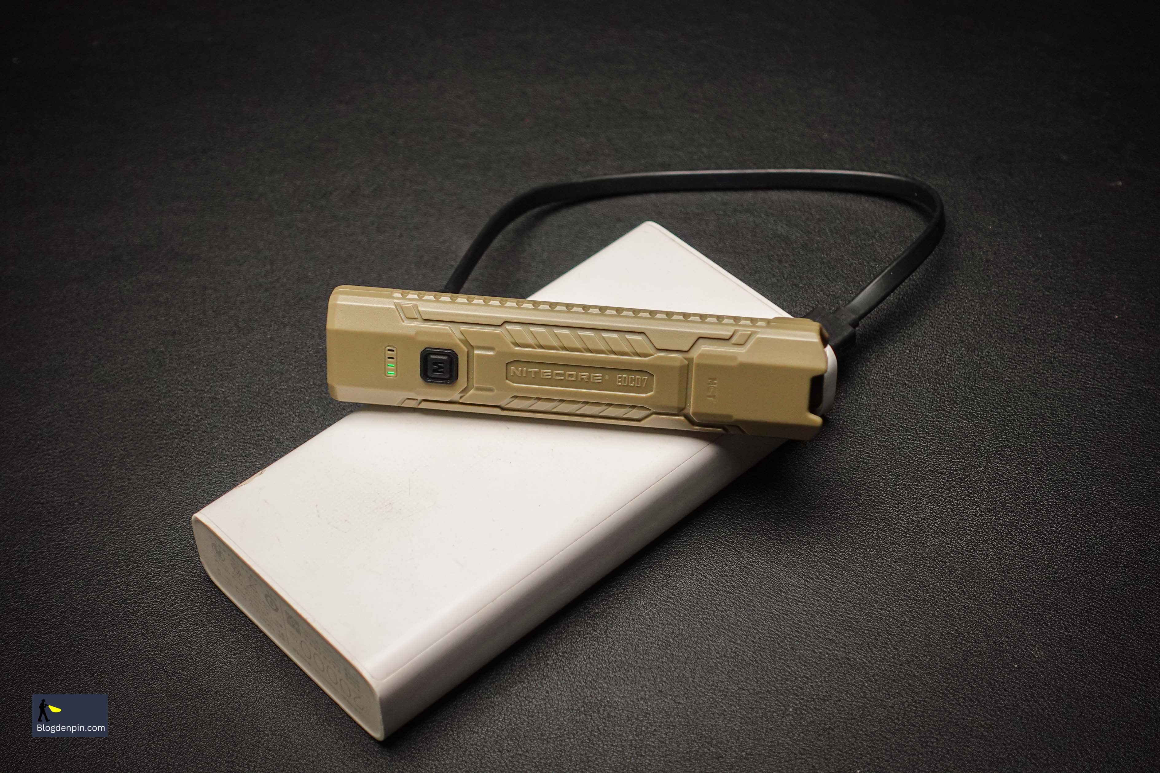 Nitecore trang bị cho EDC07 viên pin sạc Lithium Polymer dung lượng 1500mAh tích hợp trong thân, tương đương với mẫu EDC17. Mình đã có video phân tích về ưu/nhược của pin liền thân lẫn pin rời rồi nên sẽ không đề cập ở đây nữa.